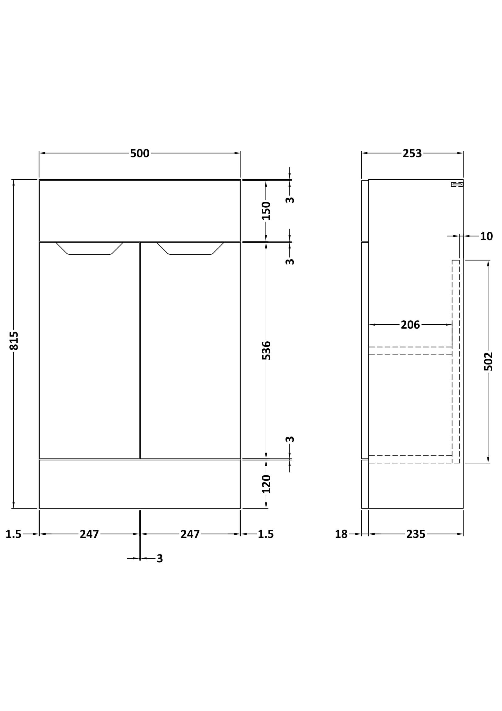 Loave 500mm Handleless Vanity Unit - 253mm Deep