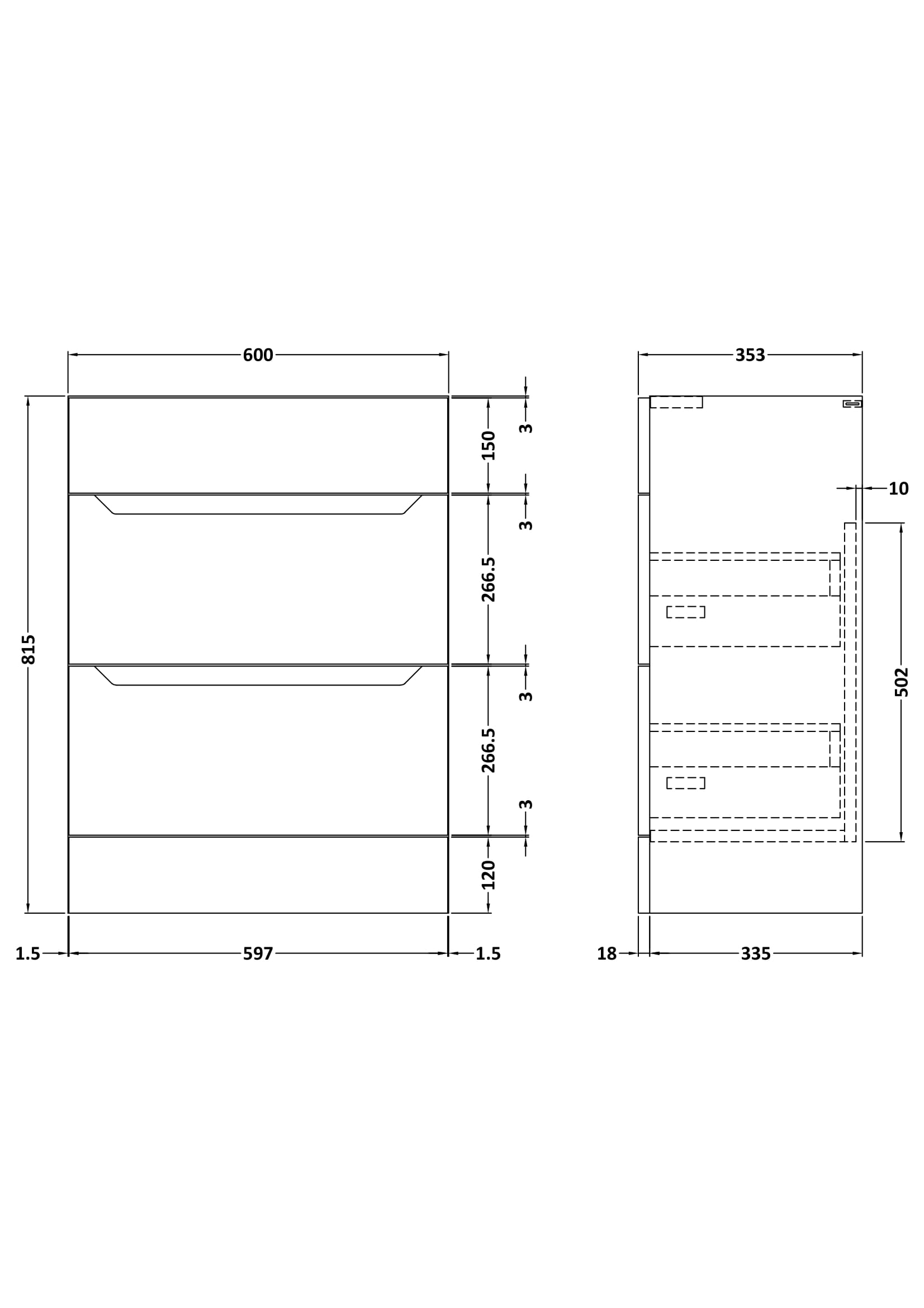 Loave 600mm Handleless Drawer Unit - 353mm Deep