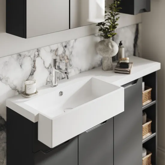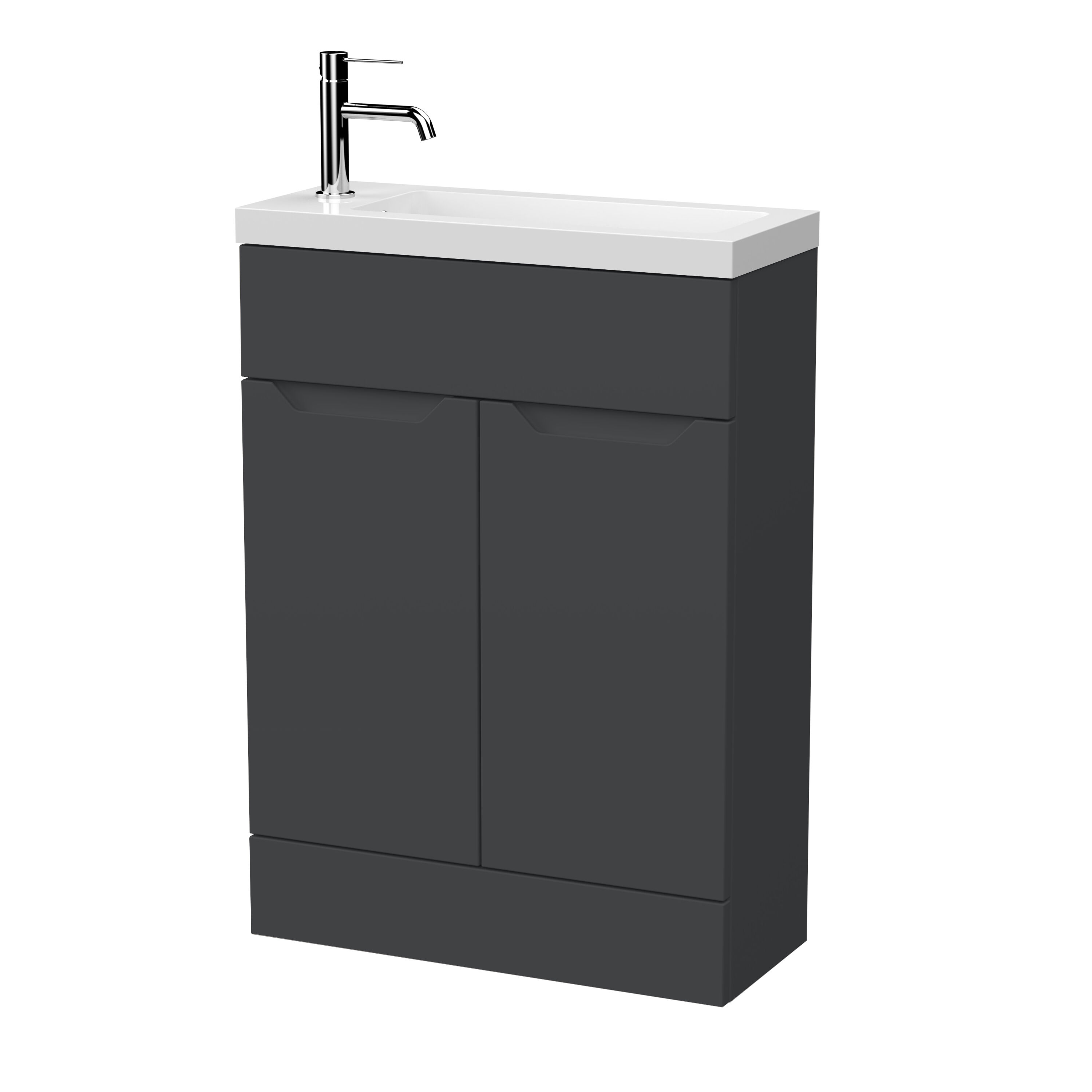 Nuie Lux Loave 600mm Handleless Vanity Unit - 253mm Deep - Soft Black