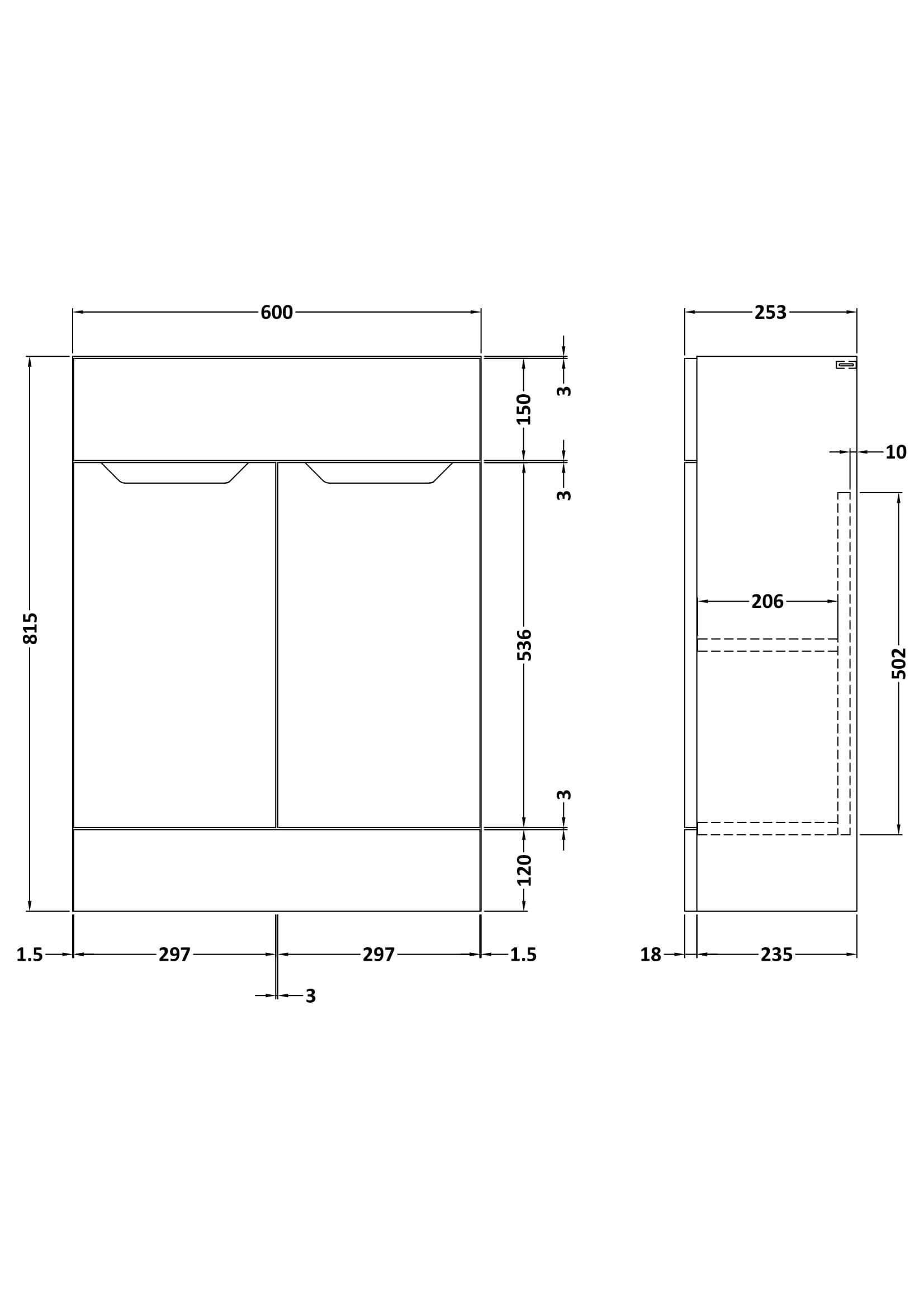 Loave 600mm Handleless Vanity Unit - 253mm Deep