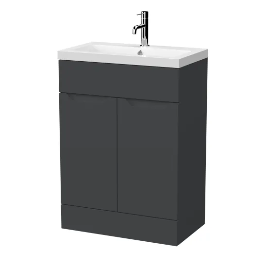Nuie Lux Loave 600mm Handleless Vanity Unit - 353mm Deep - Soft Black