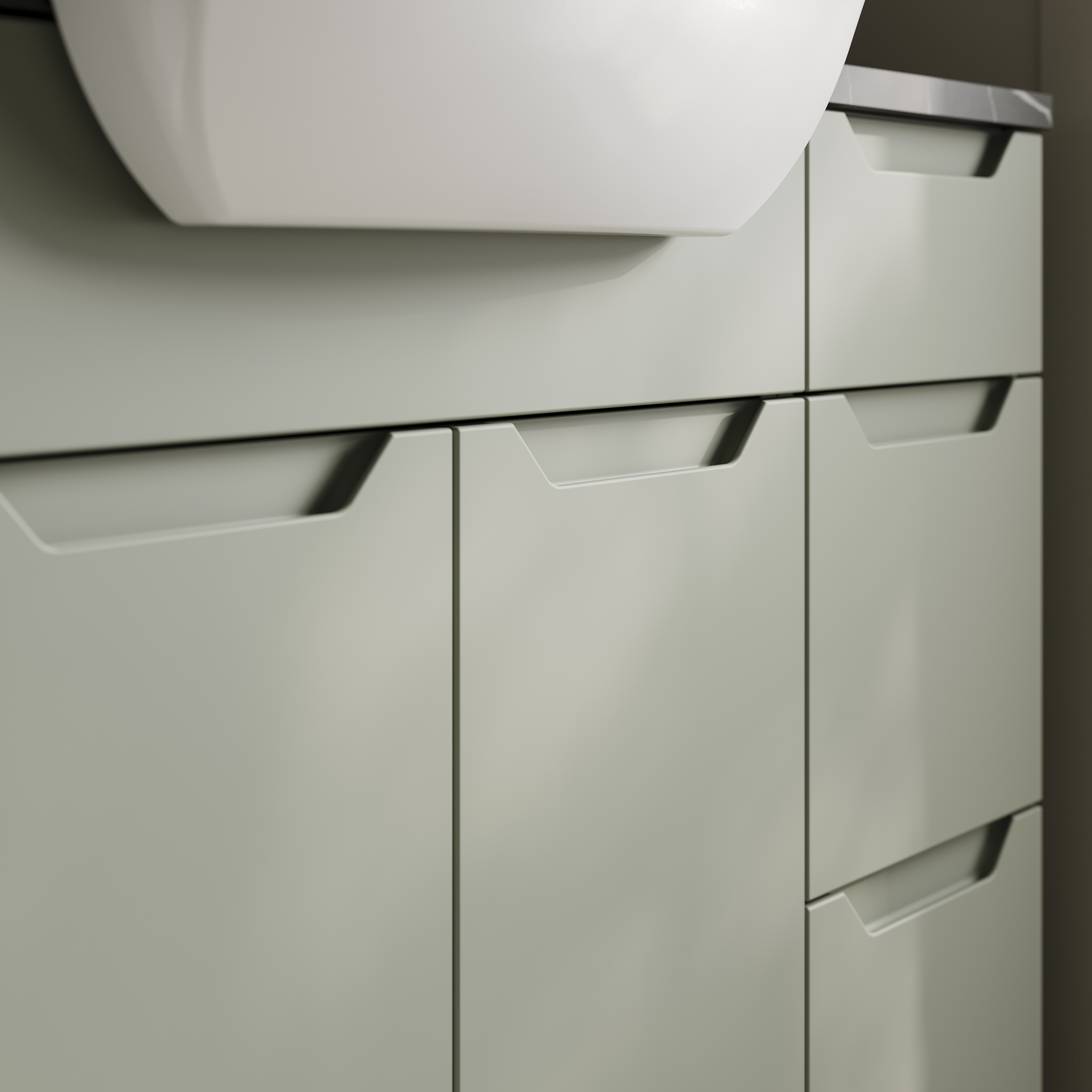 Nuie Lux Loave 600mm Handleless Vanity Unit - 353mm Deep - Fern Green