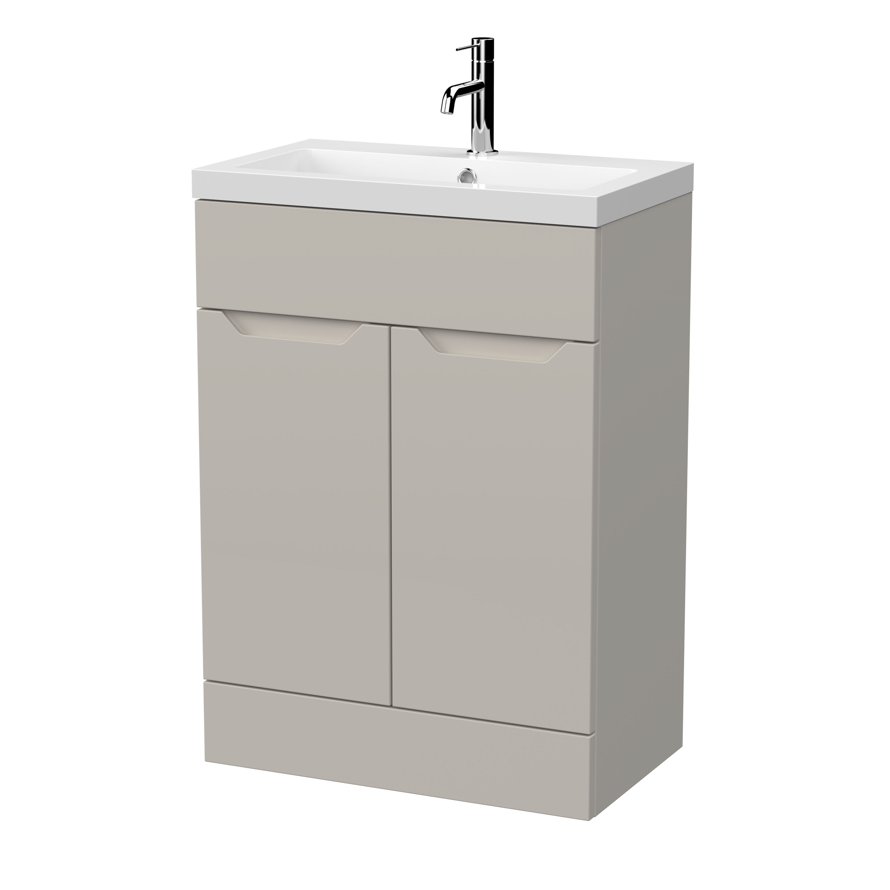 Nuie Lux Loave 600mm Handleless Vanity Unit - 353mm Deep - Pebble Grey