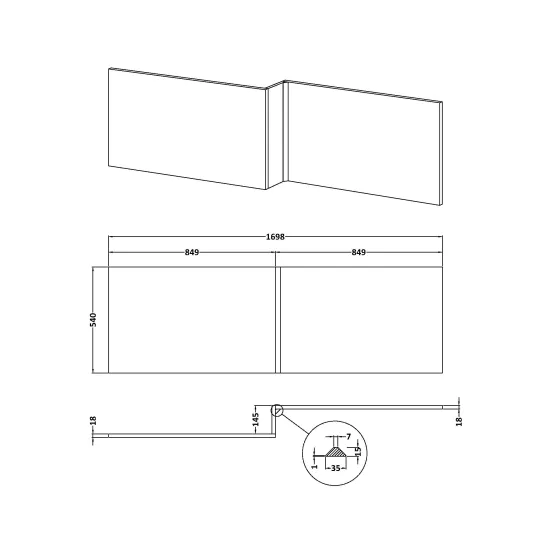 Urban L-Shape Square Shower Bath Front Panel 1700mm