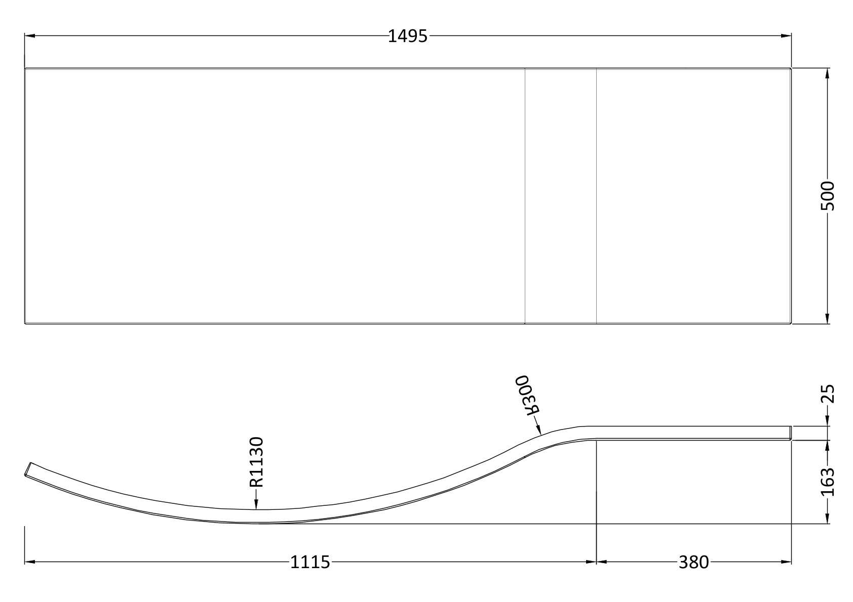 B-Shape Shower Bath Front Panel 1500mm