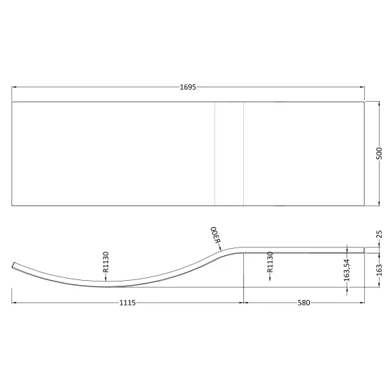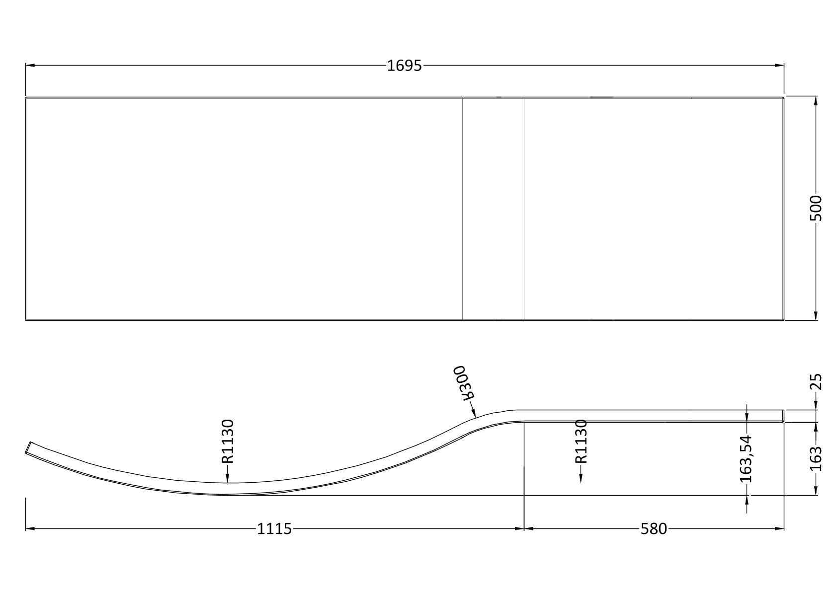 nuie Bath Panels B-Shape Shower Bath Front Panel 1700mm - White