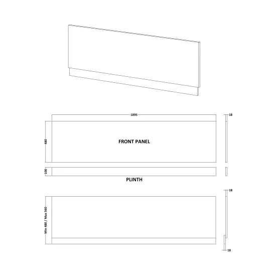 Halite 1900mm White Gloss Waterproof Front Bath Panel
