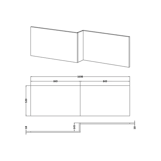 Havana Square L Shape Shower Bath Front Panel & Plinth, 1700mm