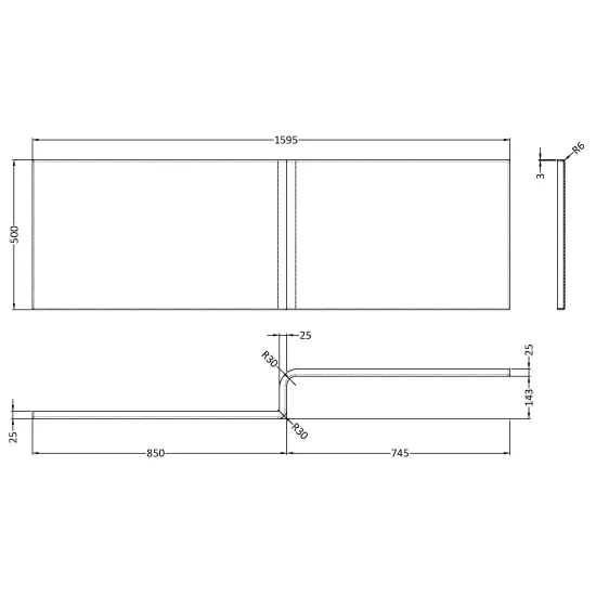 L-Shape Shower Bath Front Panel 1500mm