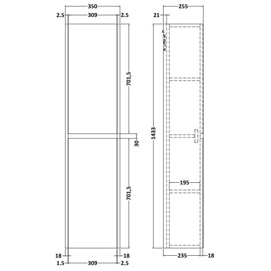 Havana Wall Hung 2 Door Tall Unit, 350mm