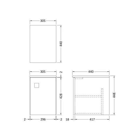 Nuie Lux Hartwell 305mm 1 Door Dove Grey Wall Hung Cabinet With Handles