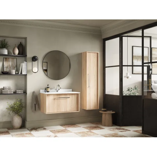 The unique tone of bleached oak creates a statement piece in any bathroom.