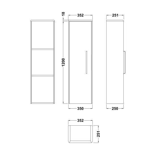 Solar Wall Hung 1 Door Tall Unit 350mm