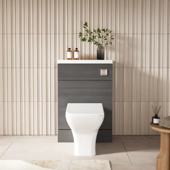 Hudson Reed Fusion 600mm Anthracite Woodgrain Compact Floor Standing Toilet Unit with Polymarble Top
