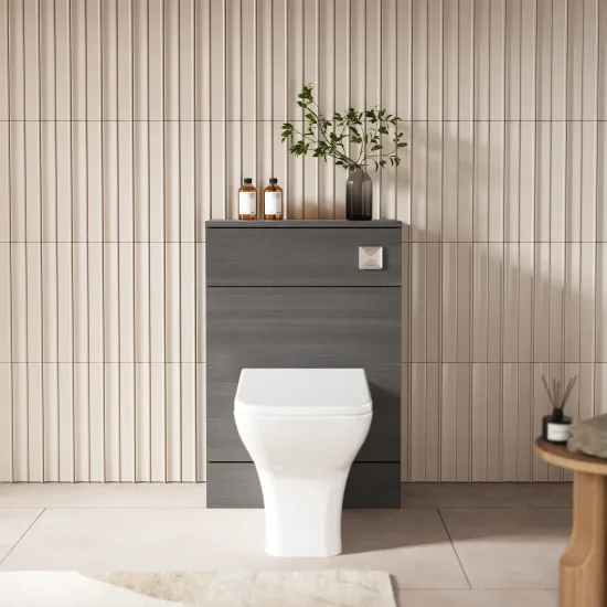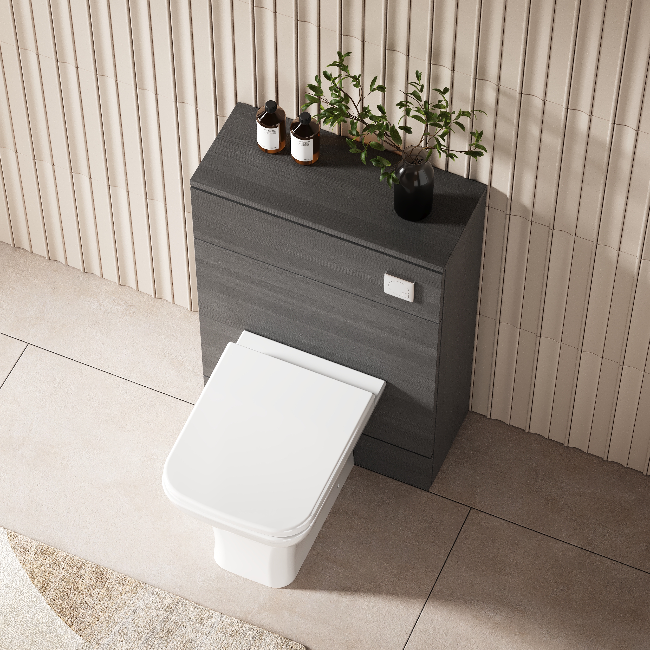 Hudson Reed Fusion 500mm Anthracite Woodgrain Floor Standing Toilet Unit with Coordinating Top