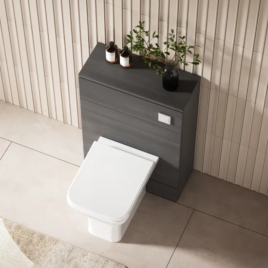 Hudson Reed Fusion Floor Standing WC Unit with Coordinating Top Compact 600mm - Anthracite Woodgrain