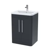 Nuie 600mm Soft Black Floor Standing Soft Close 2 Door Vanity Unit With Basin