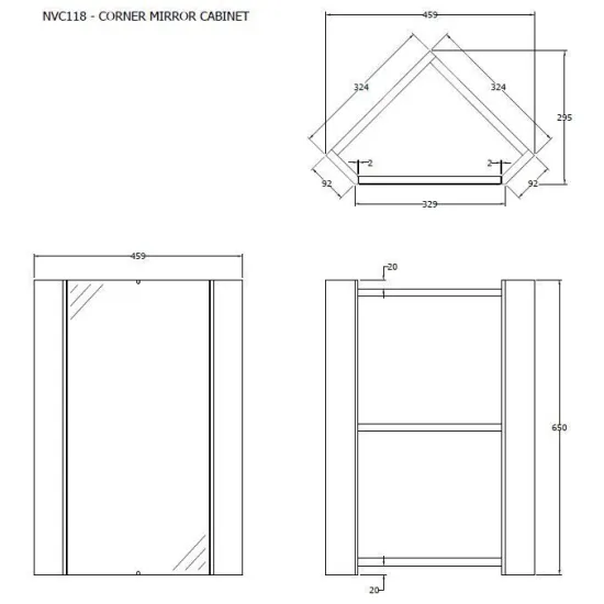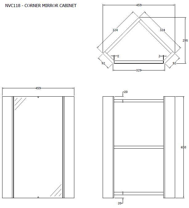 Arley Tite 324 x 650mm Corner Mirror Cabinet