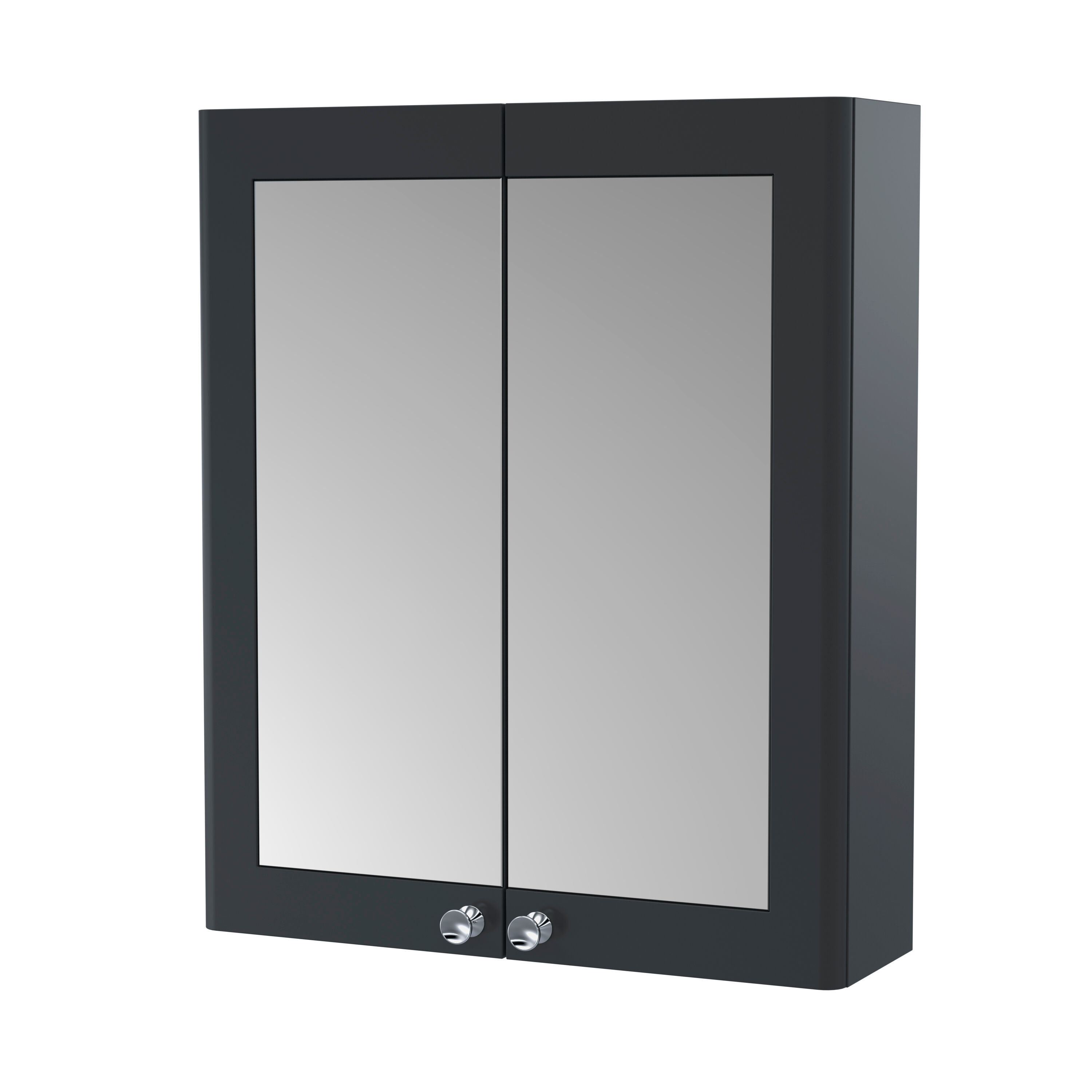 Nuie Classique 600mm 2 Door Satin Grey Wall Hung Mirror Cabinet With Handles