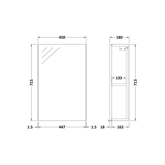 Nuie Fusion 450mm 1 Door Gloss White Wall Hung Mirror Cabinet