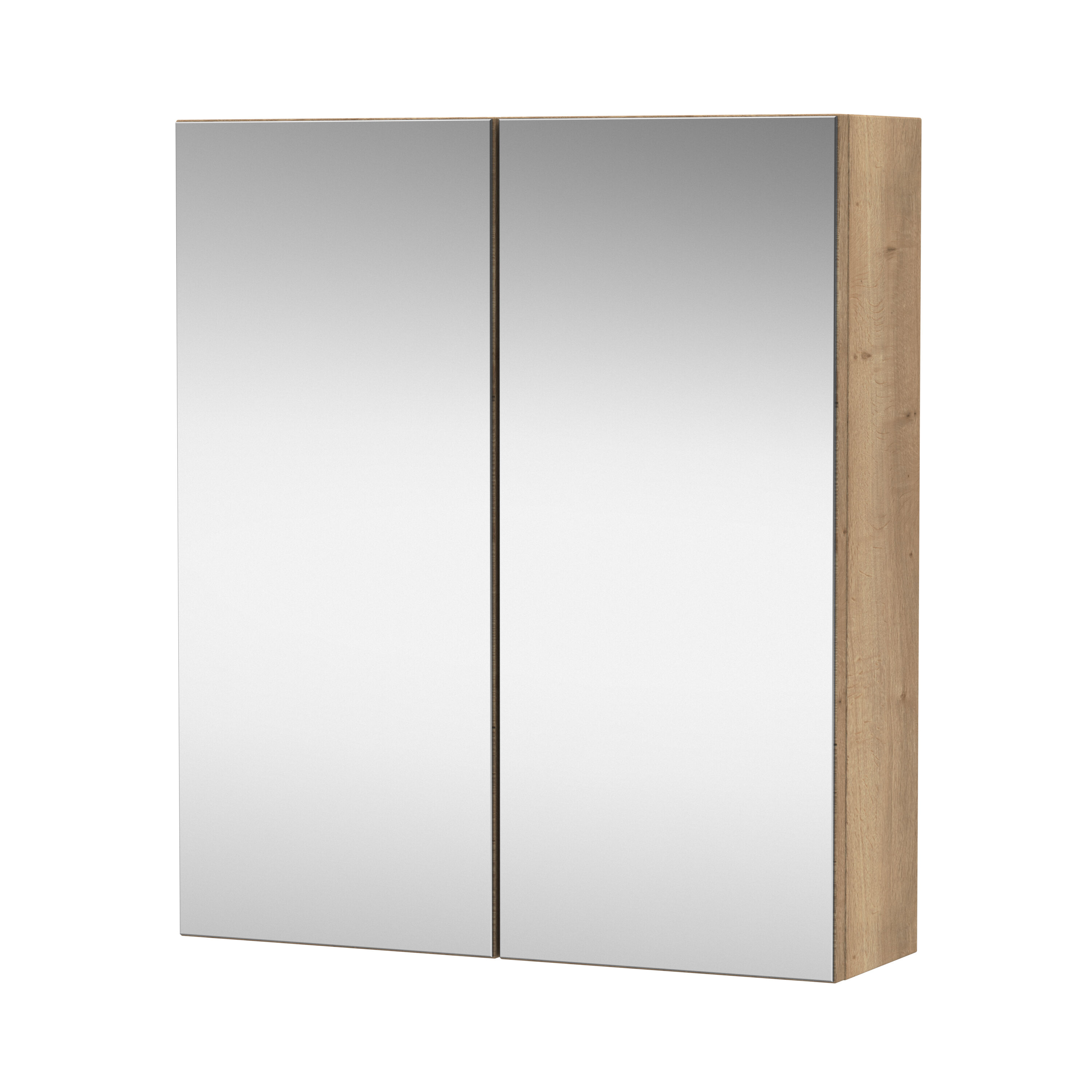 Nuie Lux Krest 600mm Slab Mirror Cabinet 50/50 - 180mm Deep - Autumn Oak