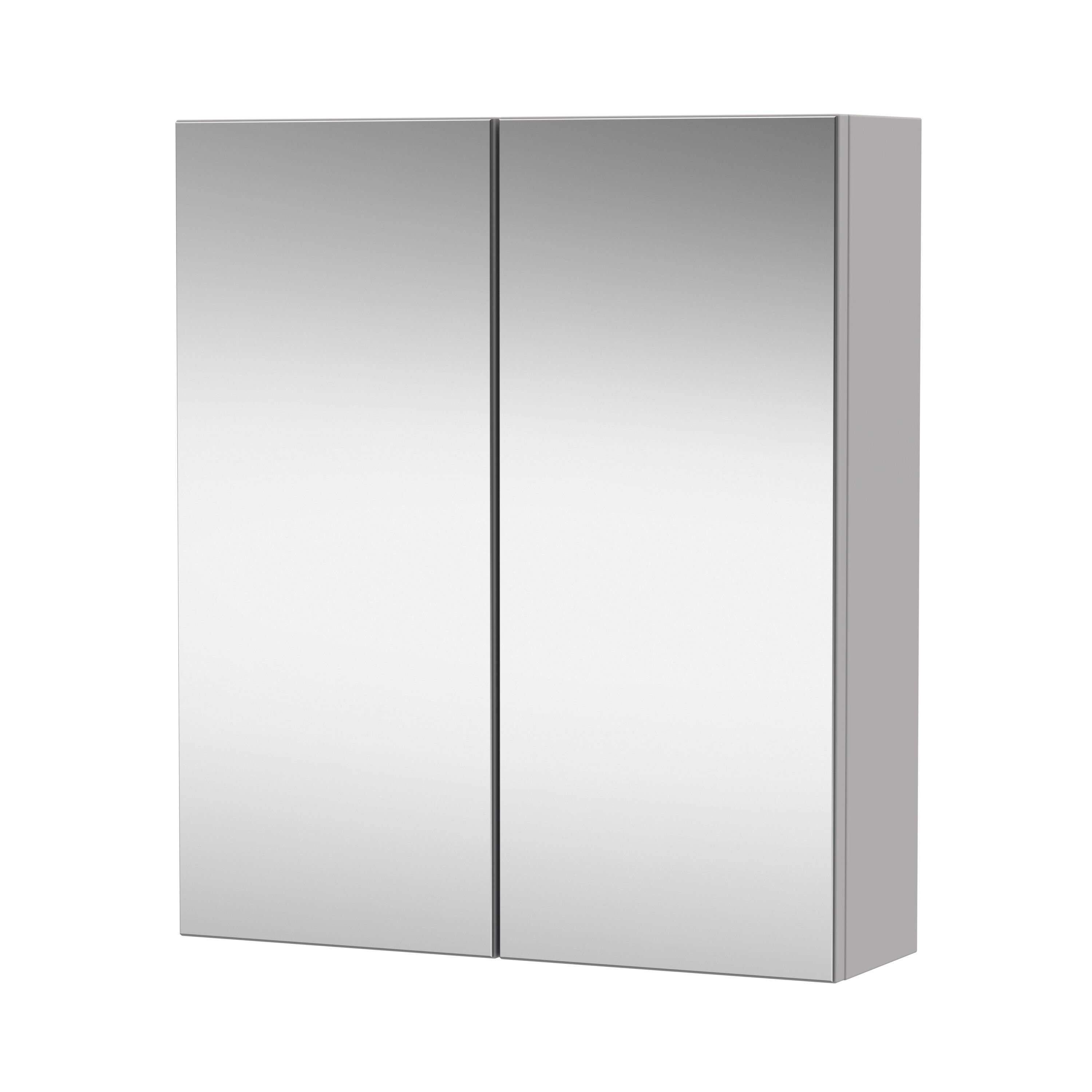 Nuie Lux Krest 600mm Slab Mirror Cabinet 50/50 - 180mm Deep - Pebble Grey