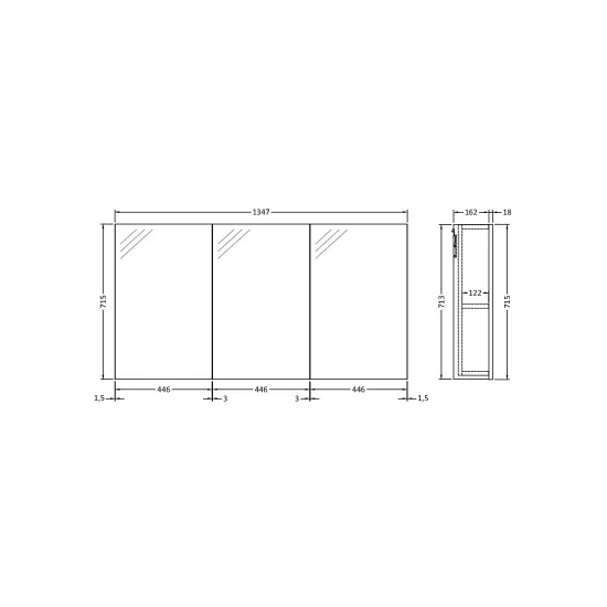 Hudson Reed Quartet 1350mm 3 Door Wall Hung Mirror Cabinet With Soft Close Doors