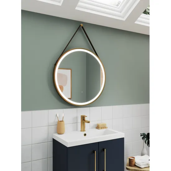 Synergy 600mm Round Touch Sensor Illuminated Mirror Touch Sensor- Brushed Brass