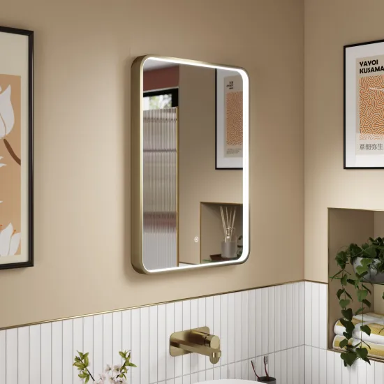 Synergy Catterick Brushed Brass Inset Frame LED Mirror - 700 x 500mm - Brushed Brass