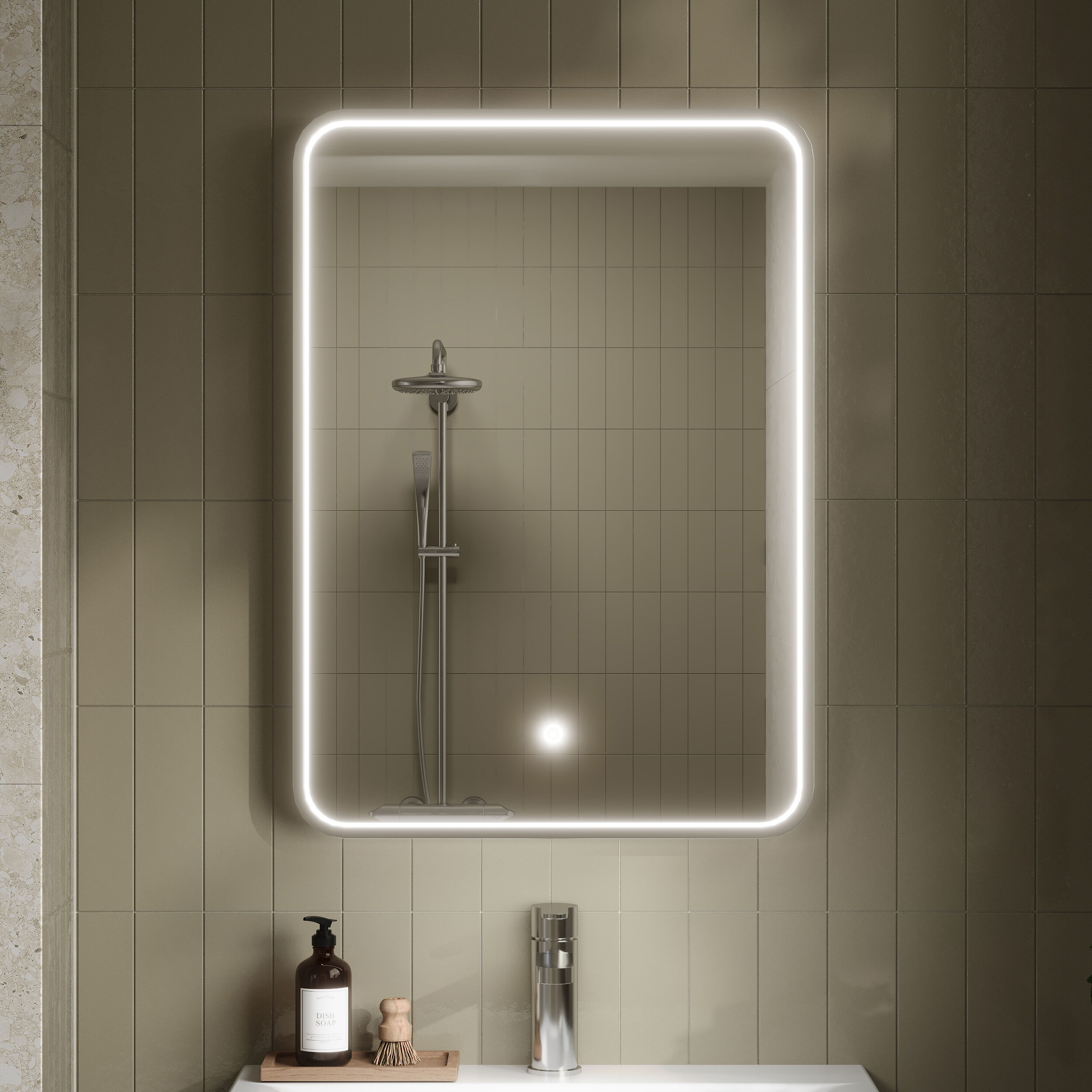 Mensa Polished Chrome Inset Frame LED Mirror - 600mm