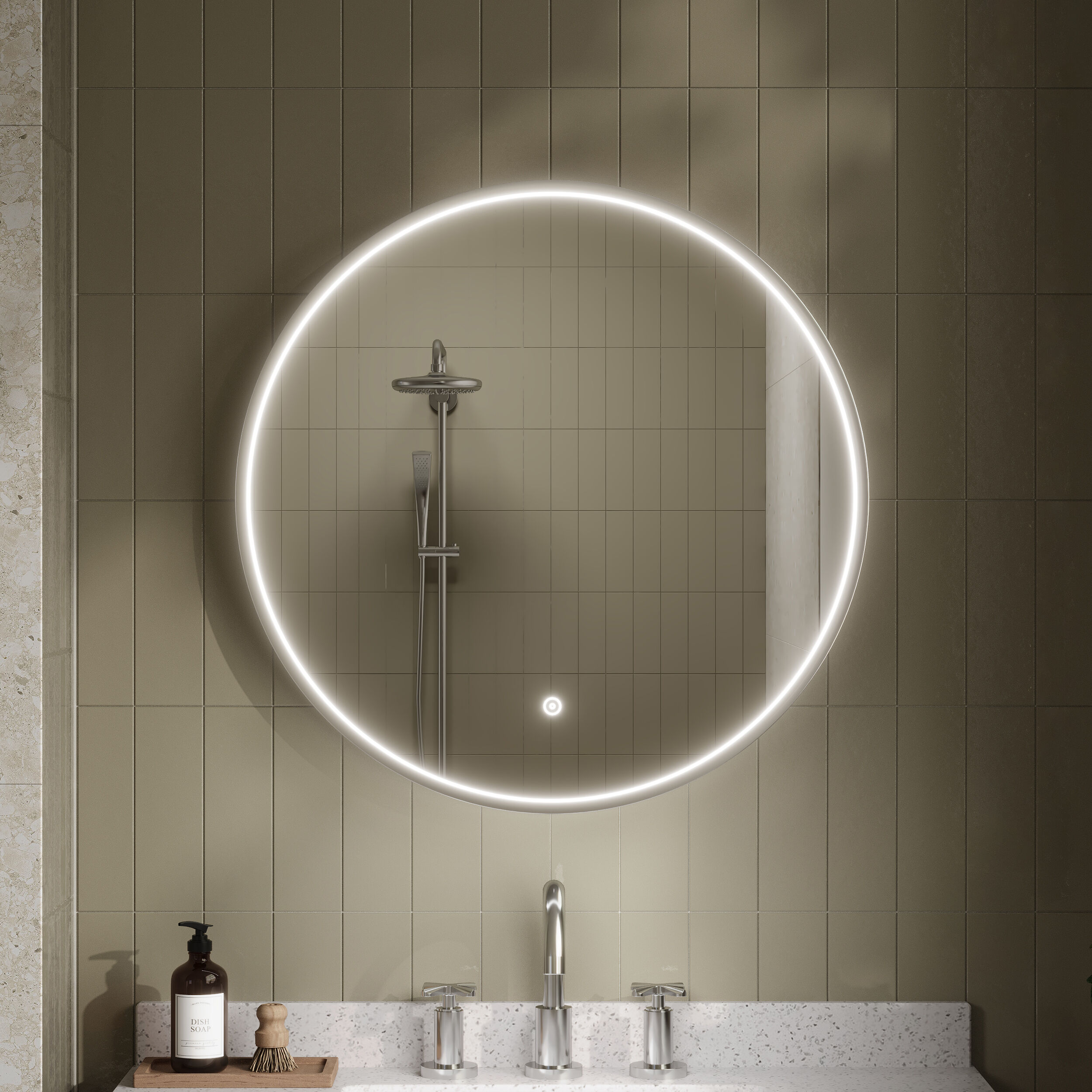 Synergy Haydock Polished Chrome Inset Frame LED Mirror - 600mm - Chrome