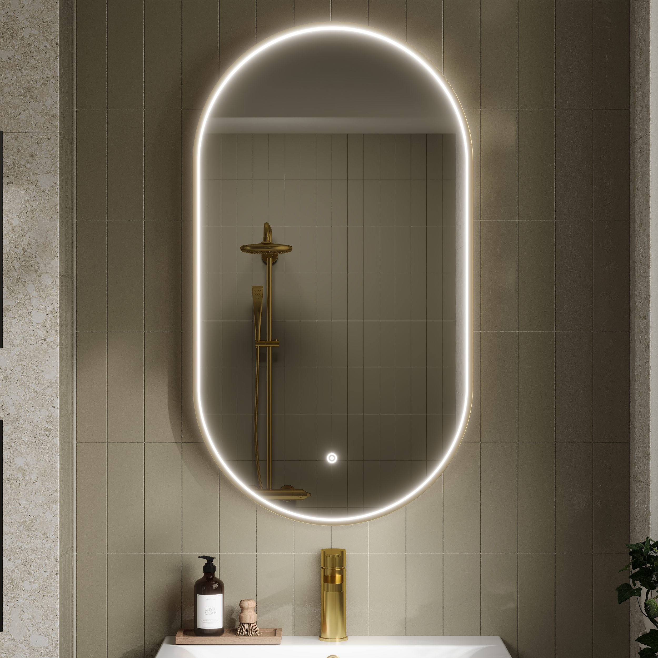 Synergy Redcar Brushed Brass Inset Frame LED Mirror - 800 x 500mm - Brushed Brass