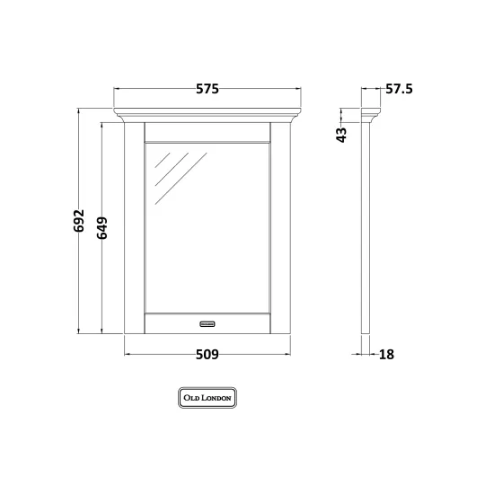 Old London Wall Hung Flat Mirror 600mm - Timeless Sand
