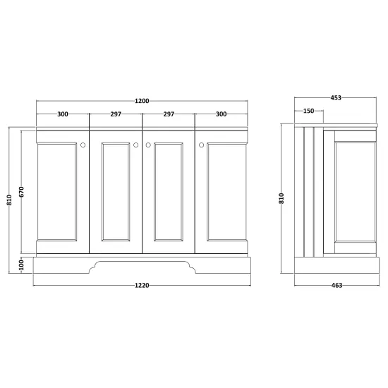Bayswater 1200mm 4-Door Curved Basin Cabinet