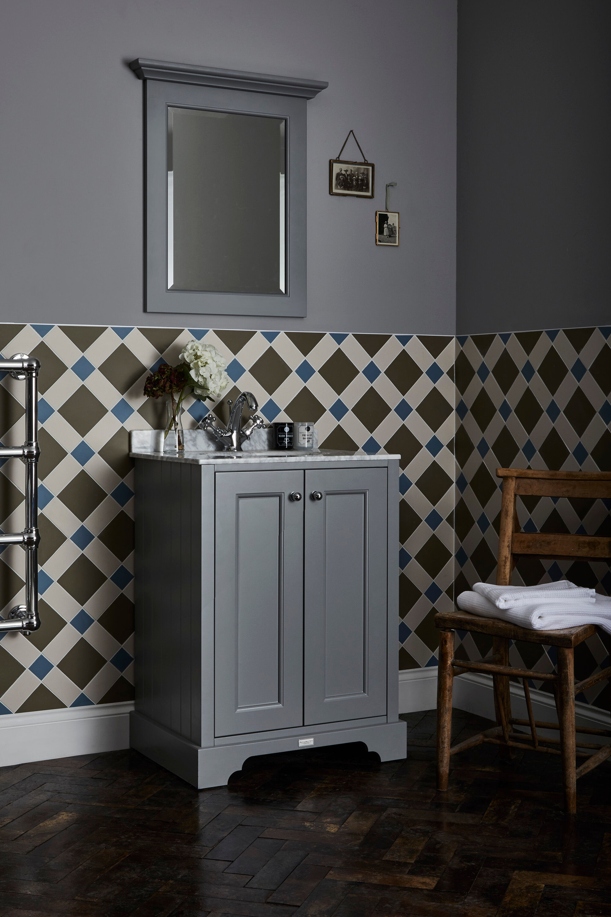 This striking grey cabinet creates a unique centre piece to any classic themed bathroom.