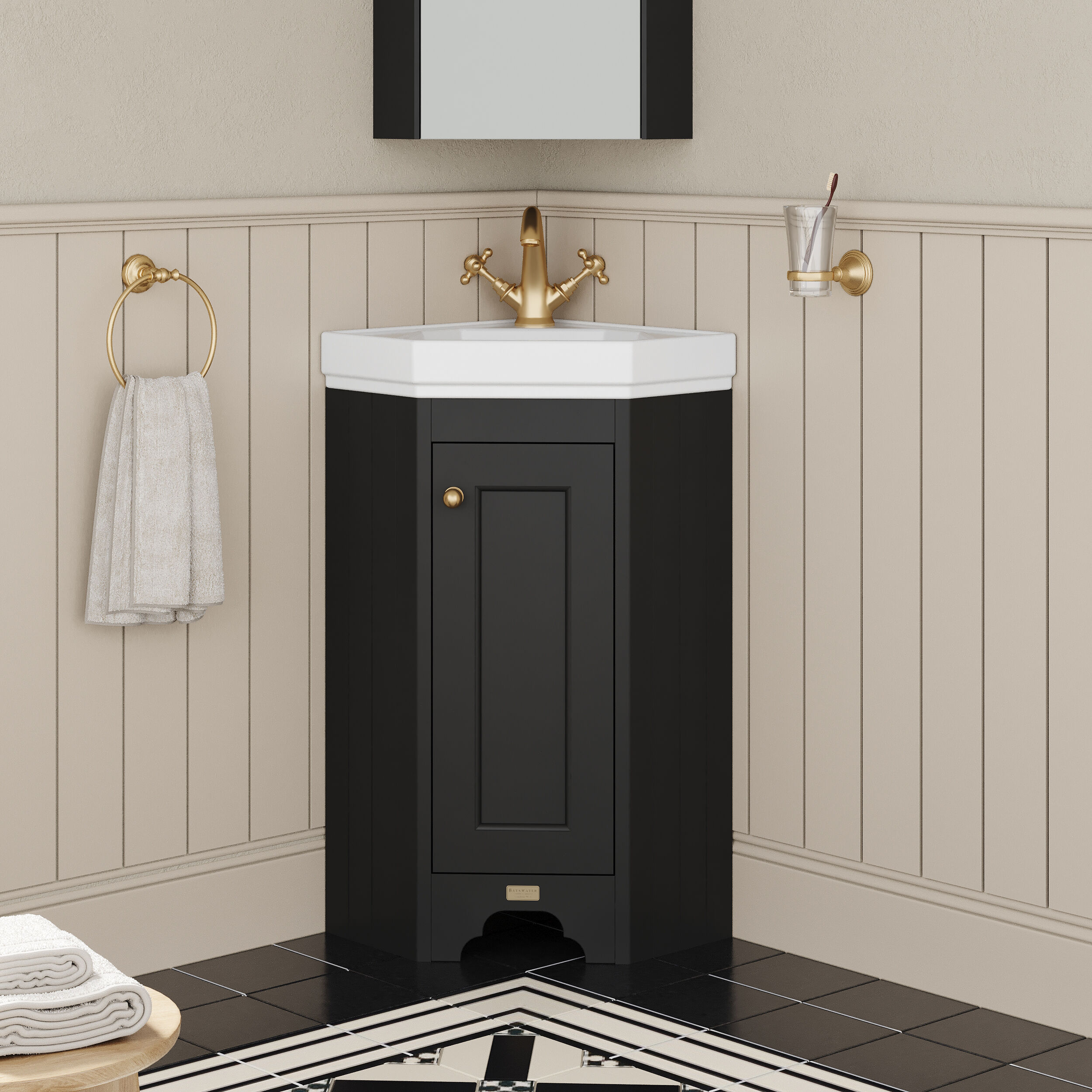 This striking black cabinet creates a unique centre piece to any classic themed bathroom.