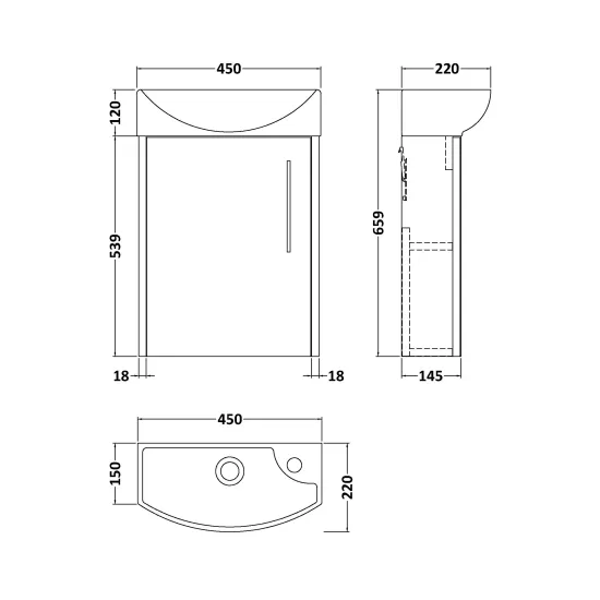 Contemporary wall hung design provides ample storage for all your bathroom toiletries and cleaning supplies