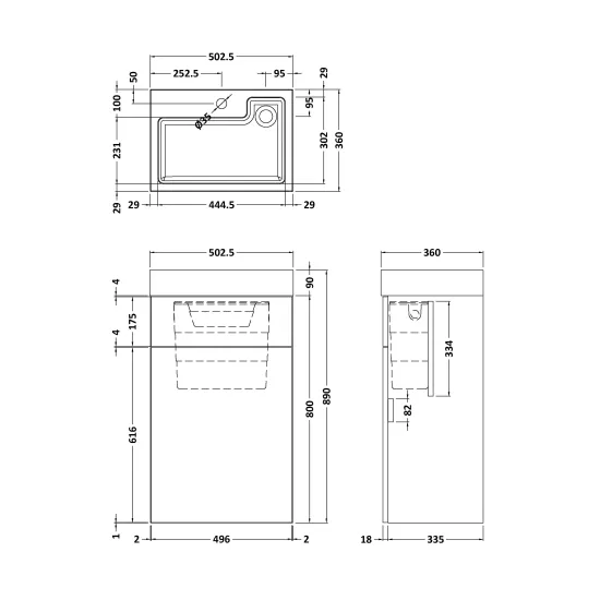 Athena 2 In 1 Floor Standing Vanity Unit with Basin, WC Unit and Concealed Cistern 500mm