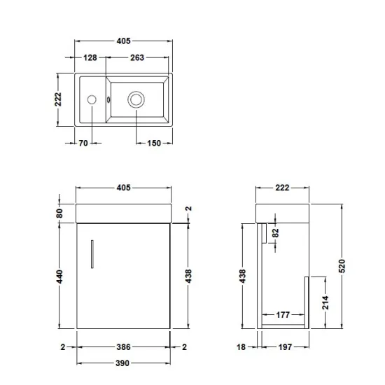 Vault Floor Standing Single Door Compact Vanity Unit with Ceramic Basin 400mm