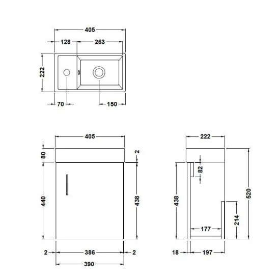 nuie Vault Wall Hung Single Door Compact Vanity Unit with Ceramic Basin 400mm - Hacienda Black