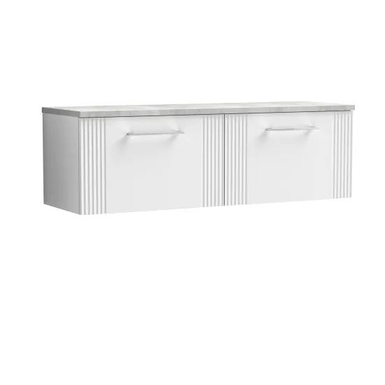 Nuie 1200mm Part Fluted Satin White Wall Hung 2-Drawer Vanity With Laminate Worktop