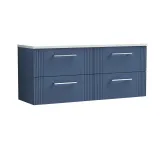 Nuie 1200mm Satin Blue Part Fluted Wall Hung 4-Drawer Vanity Unit With Laminate Worktop