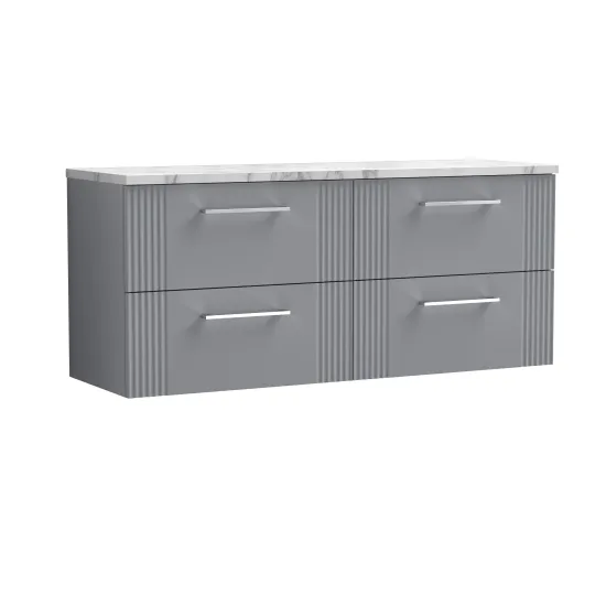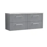 Nuie 1200mm Satin Grey Part Fluted Wall Hung 4-Drawer Vanity Unit With Laminate Worktop