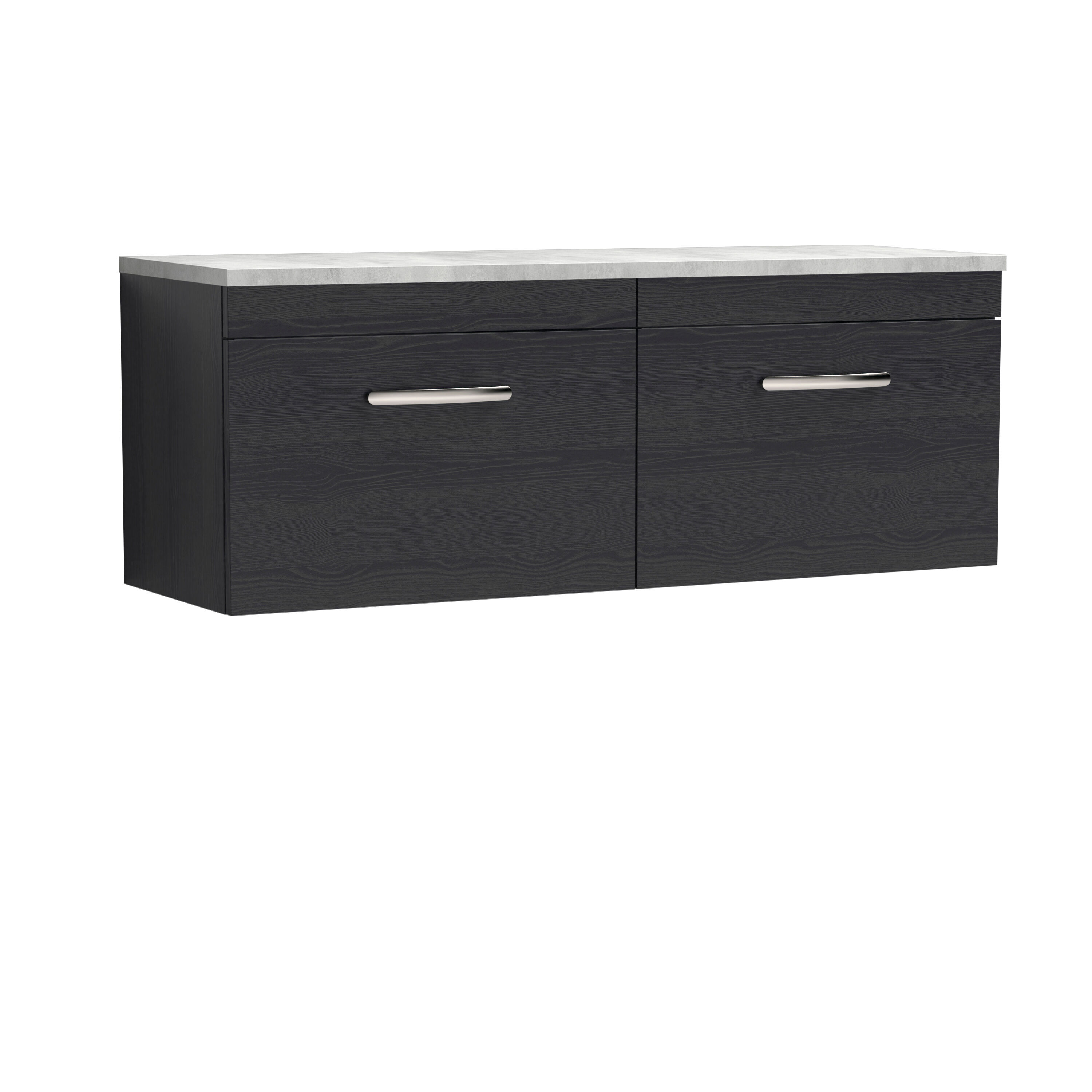 nuie 1200mm Wall Hung 2-Drawer Unit & Laminate Worktop - Charcoal Black Woodgrain
