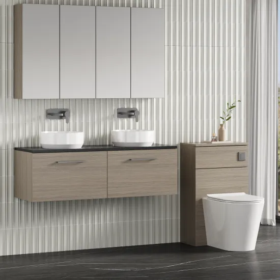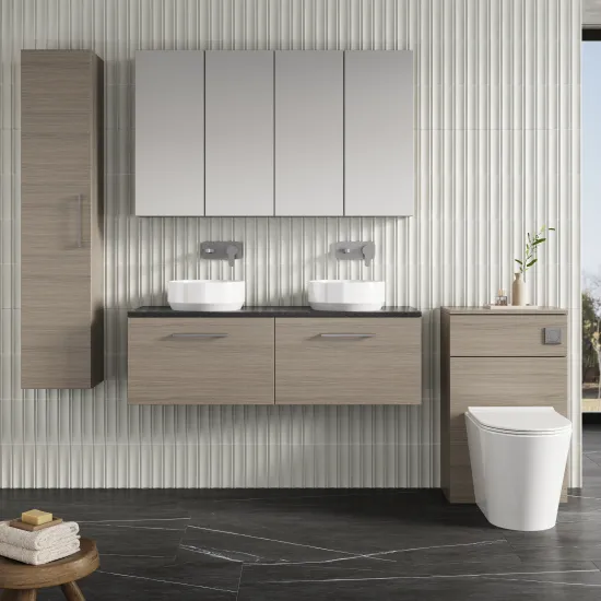 nuie 1200mm Wall Hung 2-Drawer Vanity & Laminate Worktop - Solace oak