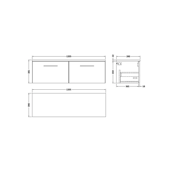 Nuie 1200mm Wall Hung 2-Drawer Vanity Unit With Laminate Worktop