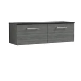 Nuie 1200mm Anthracite Woodgrain Wall Hung 2-Drawer Vanity Unit With Laminate Worktop