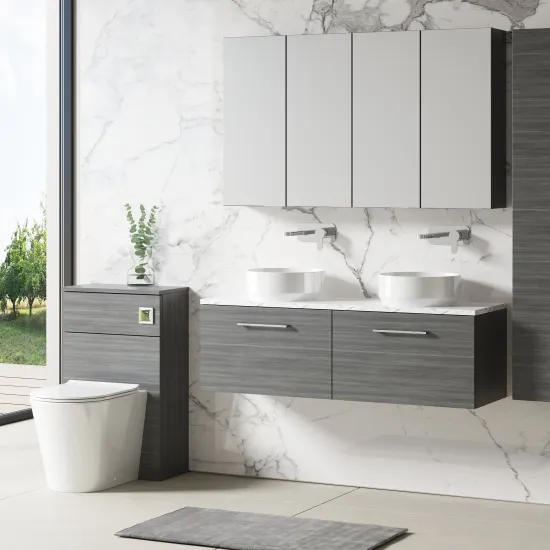 nuie 1200mm Wall Hung 2-Drawer Vanity & Laminate Worktop - Anthracite Woodgrain