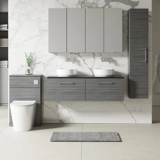 nuie 1200mm Wall Hung 2-Drawer Vanity & Laminate Worktop - Anthracite Woodgrain
