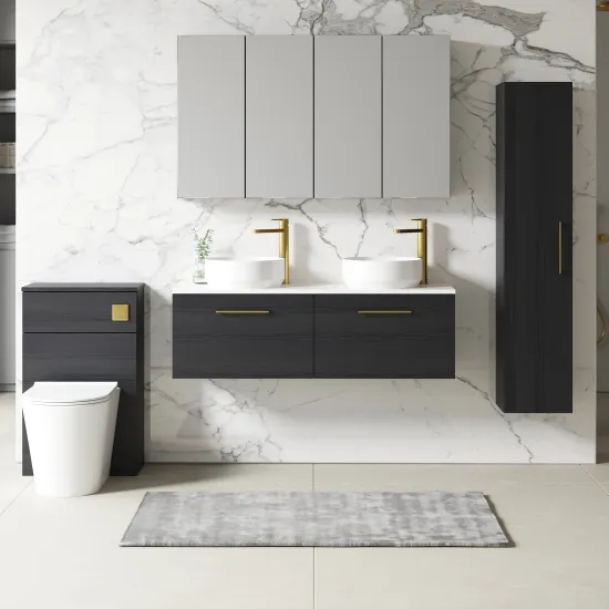 nuie 1200mm Wall Hung 2-Drawer Vanity & Laminate Worktop - Charcoal Black Woodgrain